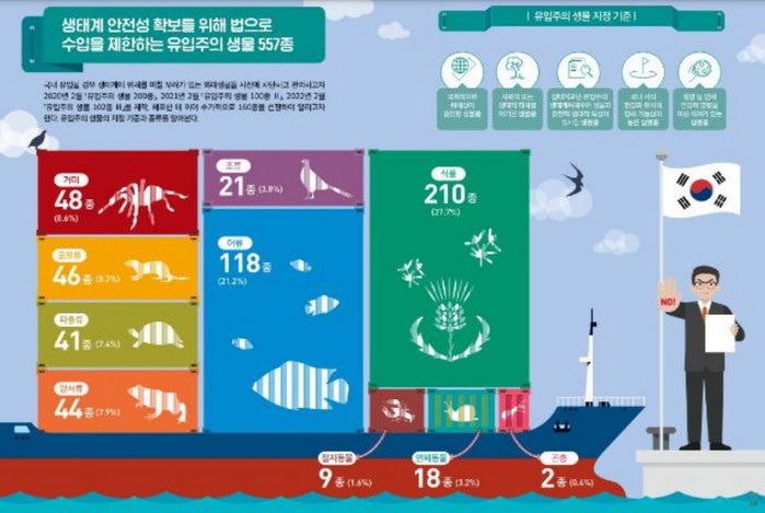 환경부는 지난해 10월 28일 160종을 신규 지정했고, 총 557종의 외래생물을 유입주의 생물로 지정·관리하고 있다.