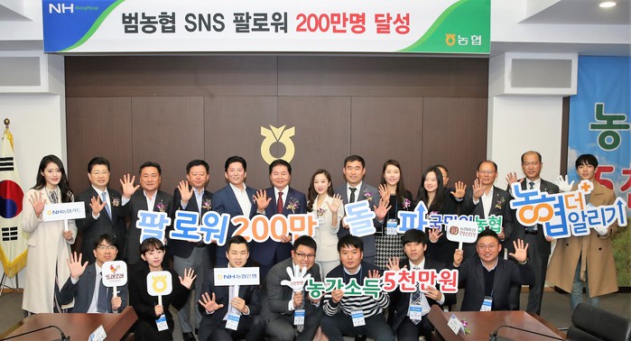 범농협 SNS 팔로워는 2017년 말 100만 명 달성을 돌파한 후 올해 9월말 기준 200만명을, 10월말 기준으로는 222만명을 돌파했다.