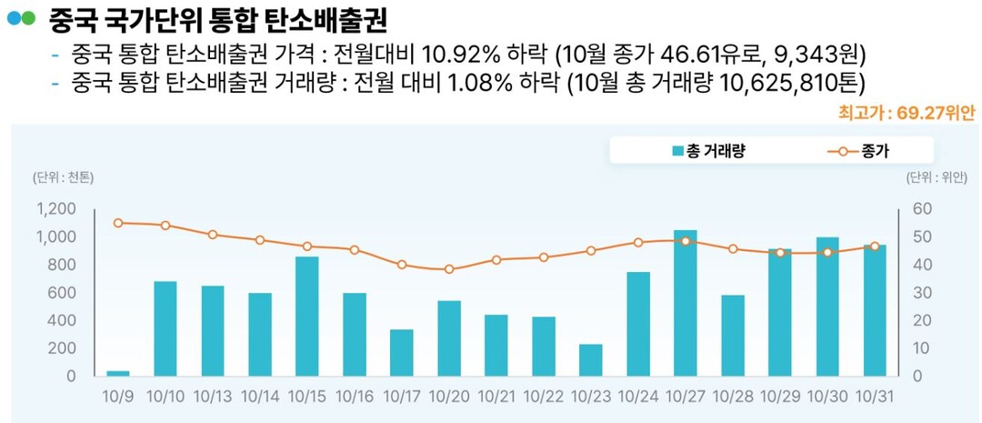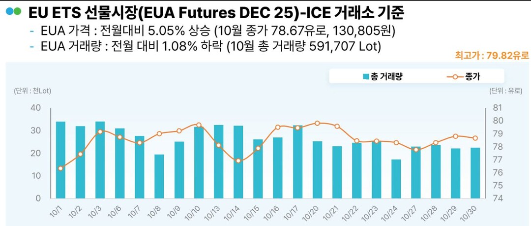 국내외 탄소거래가 활발하다. 지난달 기준, 국내 탄소배출거래 낙찰가격은 5000톤 기준 1만700원으로 지속적으로 상승세를 이어가고 있다. 반대로 거래량은 올해 기준 감소하고 있는 추세다.