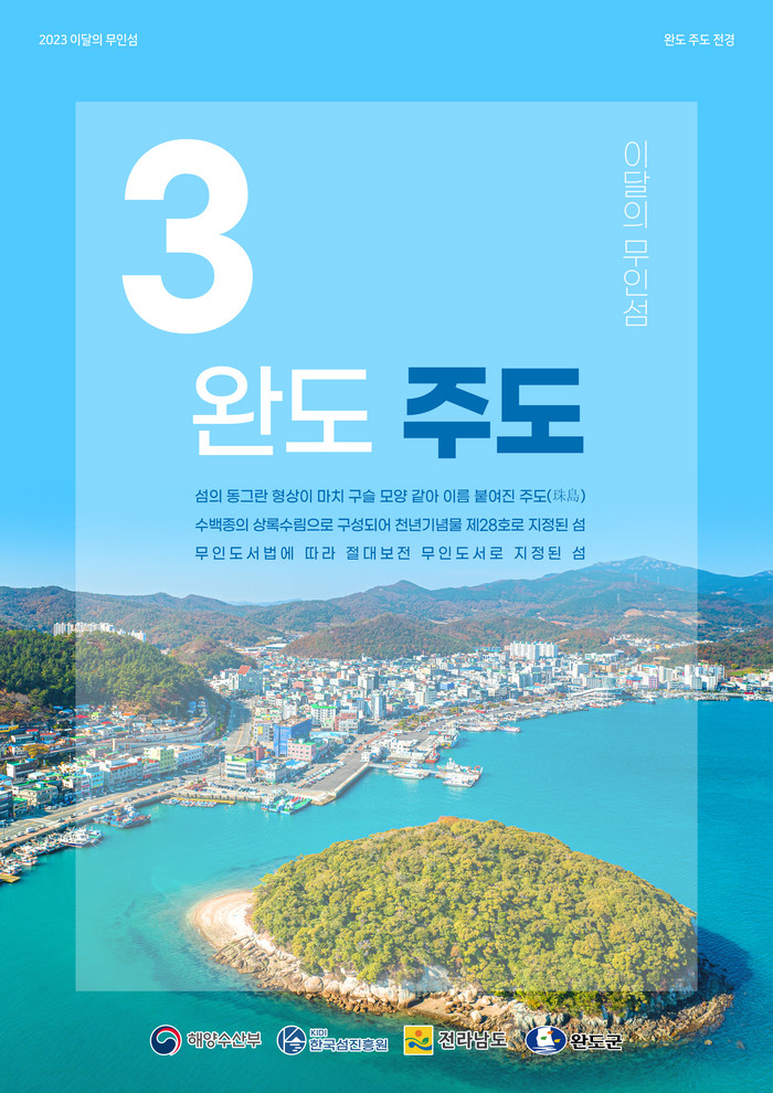한국섬진흥원(KIDI, 오동호 원장)은 8일 해양수산부가 완도군 완도읍 군내리에 위치한 주도를 '3월, 이달의 무인섬'으로 선정했다고 밝혔다.