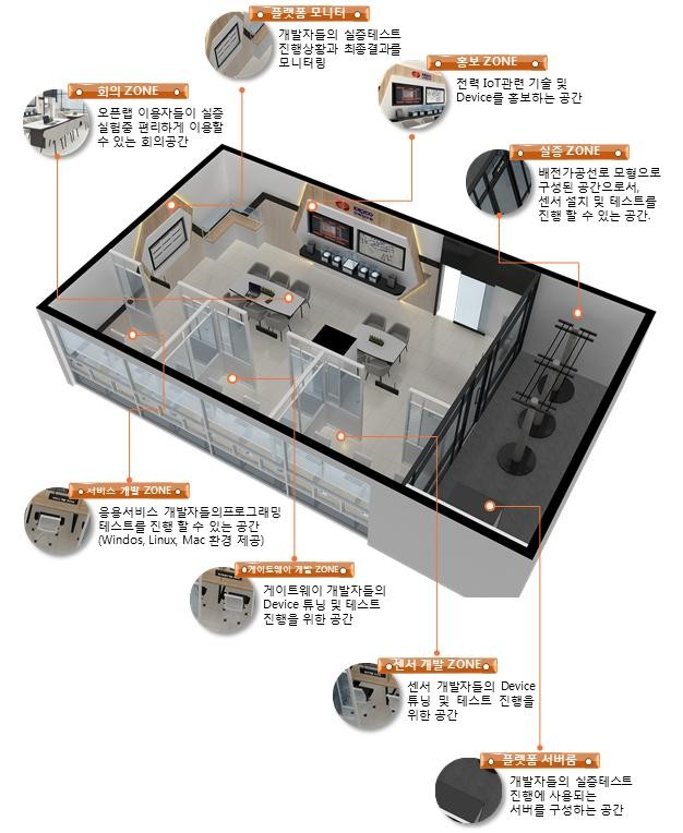 오픈랩은 국제표준 기반의 사물인터넷 동작 시험장비, 무선센서, 통신장비 등 전력 사물인터넷 표준 설비를 갖추고 있어 대학이나 산업계에서 개발한 제품을 국제 규격에 따라 성능을 검증할 수 있다.