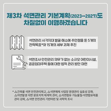 석면안전조사 등 실태 파악을 주력하는 K-eco 한국환경공단 관계자는 "현실적으로 석면 제거 제로화까지 많은 시간과 국도시비 지원은 이어져야 하는데 안타깝다."고 강조했다.