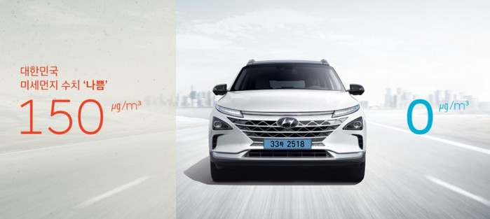 | ▲수소차의 가장 큰 매력은 100% 무공해, 이산화탄소 배출 0그램이다. |
