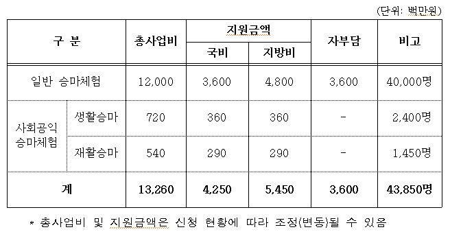 강원도 관계자는 "우리 도는 승마시설 설치 및 유소년 승마단 창단 운영, 학생승마체험 등 말산업을 FTA시대 대표 6차 산업으로 육성하기 위한 사업을 펴왔다."면서 "올해에도 승마 대중화 및 말산업 인프라 구축을 위해 여러 가지 사업을 계획 진행중에 있다."고 강조했다.