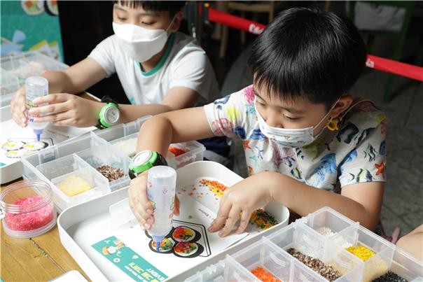 '쌀 그림 그리기 이벤트'는 식용색소로 쌀을 염색하고 쌀 요리가 그려진 도안에 다양한 색깔의 쌀을 붙여 그림을 완성하는 것으로, 오는 24일까지 키자니아 중앙광장(서울점, 부산점)에서 하루에 15회씩 진행된다.