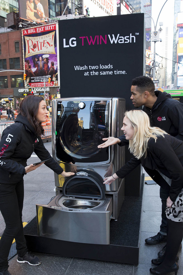 한편, LG전자는 3일(현지시간) 뉴욕 타임스 스퀘어에서 트윈워시 출시행사를 가졌다. 뉴욕 브로드웨이에서 활동중인 유명 안무가 조슈아 베르가스(Joshua Bergasse)가 분리세탁 등 트윈워시의 장점을 퍼포먼스로 연출해 거래선과 관람객들로부터 호응을 얻었다.