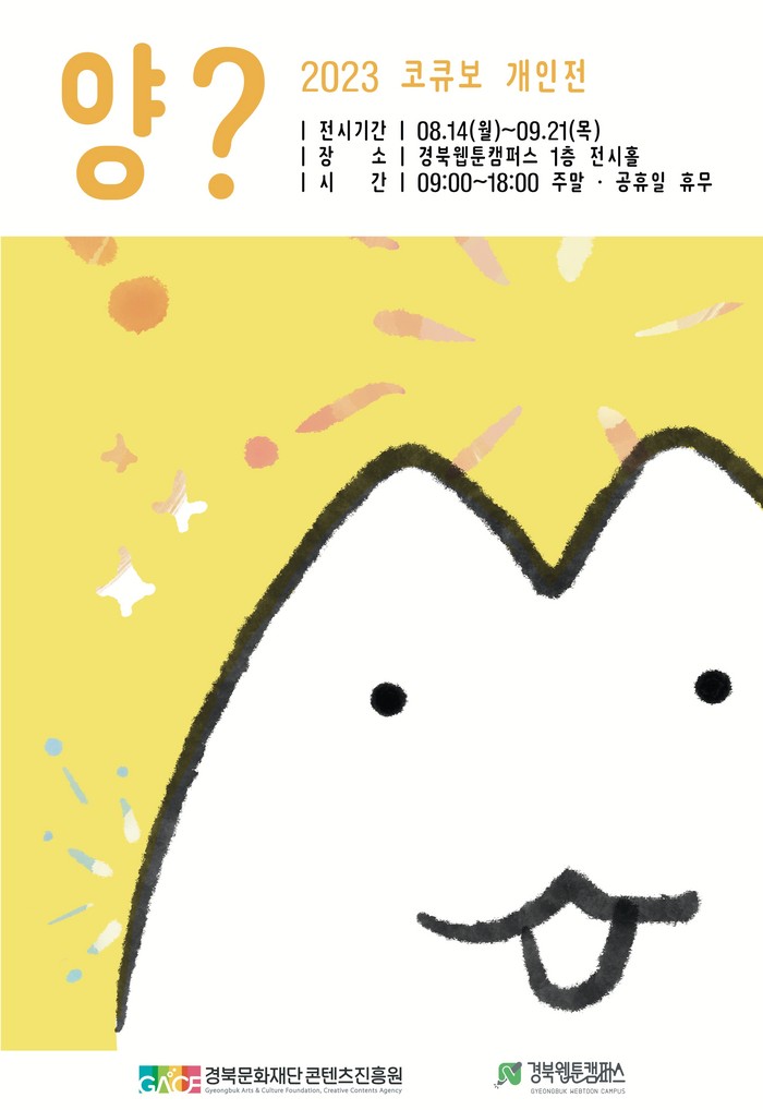 [환경데일리 이은주 기자]경북문화재단 콘텐츠진흥원(원장 이종수)이 운영하는 경북웹툰캠퍼스가 새달 21일까지 캠퍼스 전시홀에서 코큐보 작가의 개인전 <양?>을 개최한다.