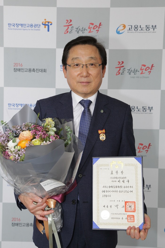 [환경데일리 김영민 기자] (주)스타벅스커피 코리아 이석구 대표이사가 4월 6일 고용노동부와 한국장애인고용공단이 개최한 '2016 장애인 고용 촉진 대회'에서 장애인 고용 촉진 유공자 정부 포상으로 대통령 표창을 수상했다. <본지 기사 참조>