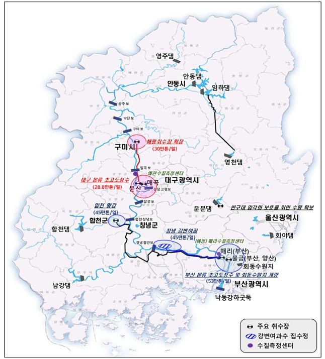합천 황강 복류수(45만톤), 창녕 강변여과수(45만톤)를 개발해 경남 중동부(48만톤 우선배분)와 부산(42만톤)에 공급한다.