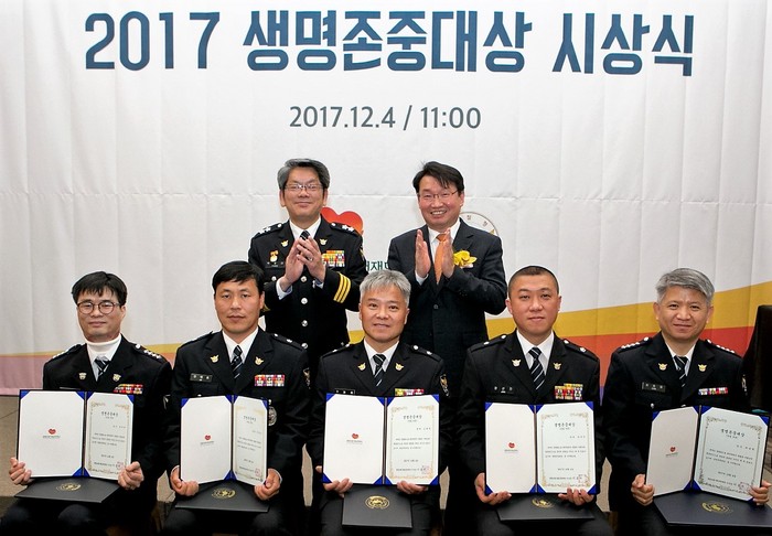 재단은 시상식에서 국민의 안전과 생명을 보호하기 위해 밤낮없이 수고한 고재중 경위, 박득권 경사, 안재호 경위, 장선진 경위, 최종철 경사 등을 선정해 상을 수여하고 1억원의 포상금을 지급했다.
