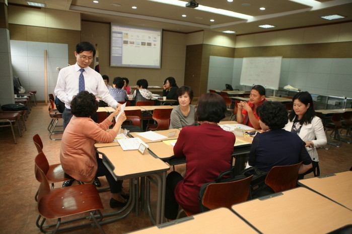▲전성군 교수가 강의 전담으로 나서 전문 농업경영인들을 대상으로 고품질 명품화 굿뜨래 친환경농산물 생산을 위한 과정에 함께 참여하고 있다. © 환경데일리 |
