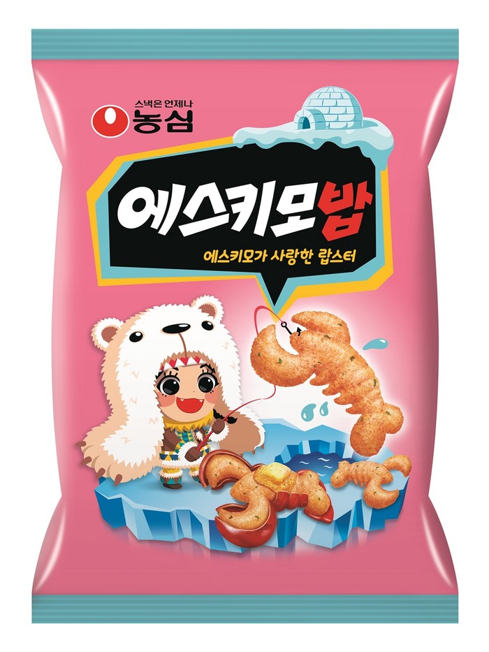 에스키모밥은 캐나다산 랍스터살과 매콤한 칠리버터소스로 맛을 낸 제품이다. 모양을 랍스터 형태로 만들어 보는 재미까지 더했다. 에스키모밥은 1976년 출시돼 40여 년간 꾸준한 인기를 얻고 있는 '인디안밥'의 후속작으로 인디안밥과 같이 옥수수로 만든 '콘스낵'이다.