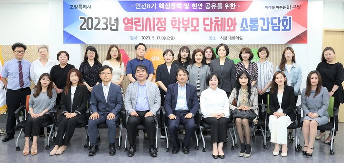 [환경데일리 문종민 기자]고양특례시는 지난 17일 관내 학부모 단체 관계자들이 참석한 가운데 고양시청 대회의실에서 '2023년 열린시정 학부모 단체 소통간담회'를 개최했다.