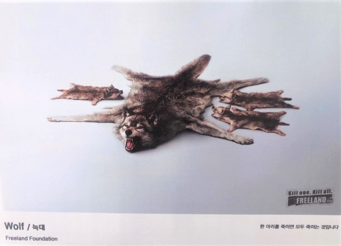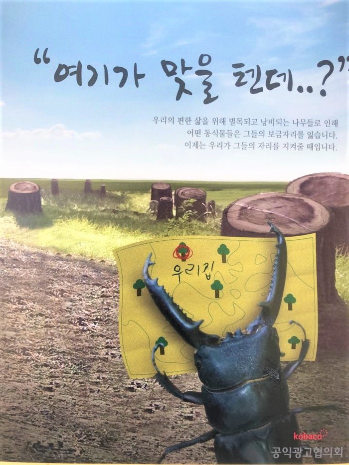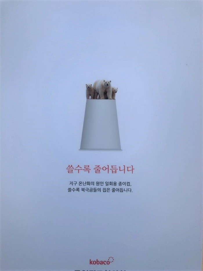 [환경데일리 김영민 기자]"가는 톡이 고와야 오는 톡도 곱지." 우리사회 만연된 타인 비방, 인신공격, 폄하, 악성댓글의 문제점 공익광고물. "한 마리를 죽이면 모두 죽이는 것입니다.", 더 이상 볼 수 없는 멸종동물 실태고발성 광고물.