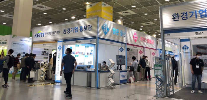 | ▲환경보전협회 주최한 2022년도 엔벡스에 참여한 KEITI의 협력기업들이 참여한 환경기업 홍보관 부스 모습 |