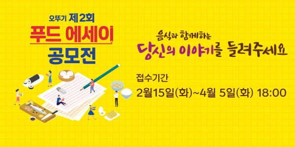 접수 기간은 15일부터 4월 5일(화) 18시까지로, 음식을 사랑하는 대한민국 국민이면 누구든지 응모할 수 있다.