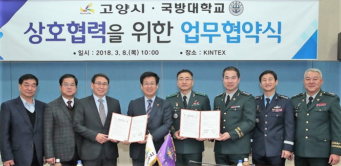 [환경데일리 이수진 기자]고양시는(시장 최성) 8일 국방대학교와 상호 발전과 지속적 협력 증진을 위한 업무협약(MOU)을 체결했다.