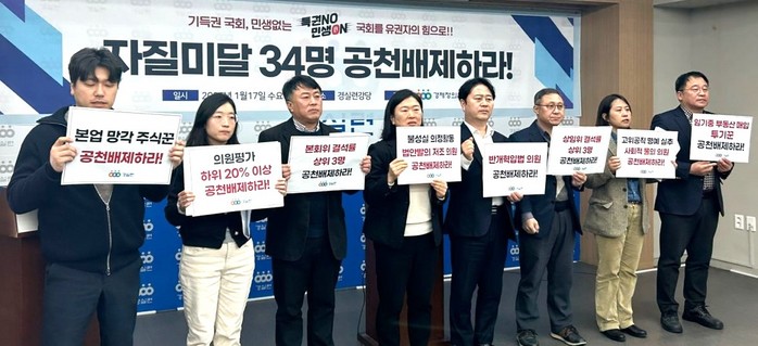 경제정의실천시민연합(경실련)은 17일 오전, 경실련 강당에서 불성실한 의정활동 및 기타 자질이 의심되는 현역 의원 공천배제 및 검증촉구 명단을 발표했다.