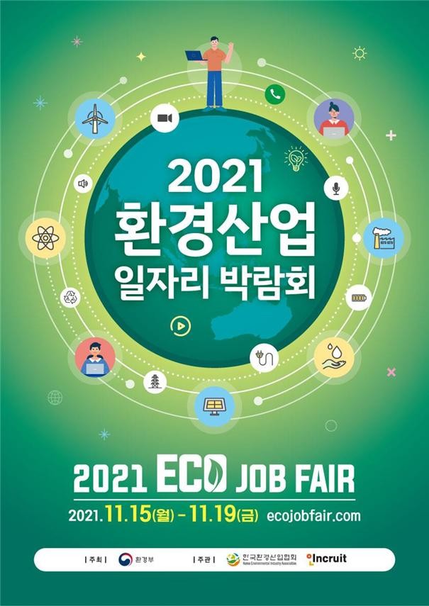 환경부와 한국환경산업협회는 11월 15일부터 19일까지 '2021 온라인 환경일자리 박람회'를 개최한다. 환경부는 기업들에게 환경인재 채용의 기회를 주고, 환경분야 전문인력의 취업성과를 높이기 위해 2010년부터 매년 '환경산업 일자리 박람회'를 개최하고 있다.