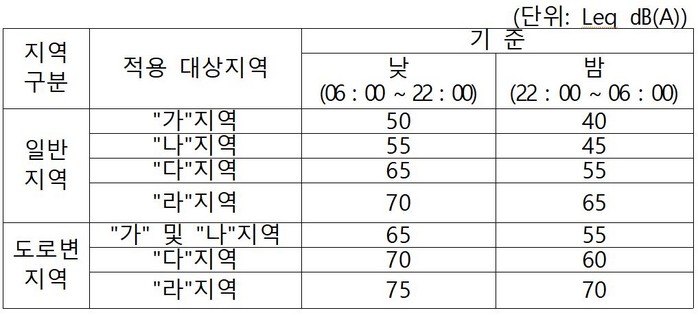 ▲환경 소음기준표 |