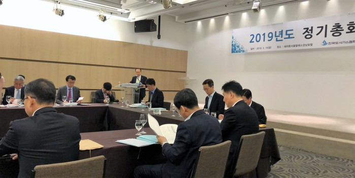 [환경데일리 김영민 기자]창립 35주년을 맞은 한국도시가스협회(회장 구자철)은 15일 쉐라톤서울팔래스강남호텔에서 2019년 1차 이사회와 정기총회를 개최했다.