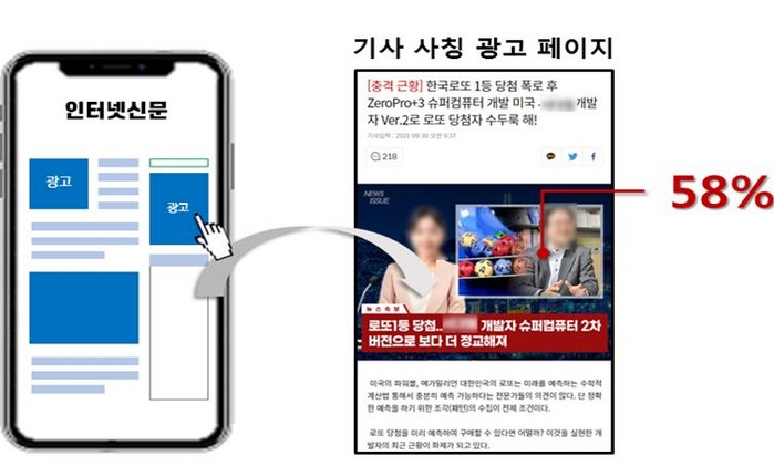 인터넷신문 광고 연결 중 58% 기사 사칭 광고페이지로