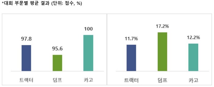 이번 대회는 연료효율점수와 연비 향상 두 부문으로 진행됐으며, 각 부문 별 3가지 모델 (트랙터, 덤프, 카고)로 나눠 대회기간동안 최소 주행거리 4000km 이상 충족하는 참가자를 대상으로 수상자를 선정했다.