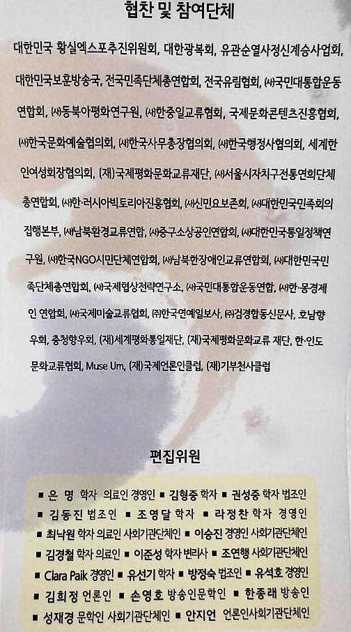 이번 출판기념회는 3.1운동 및 대한민국 임시정부수립100주년기념 범국민추진위원회에서 주최하고 세계한인재단 한국한상인연합회가 주관했다.