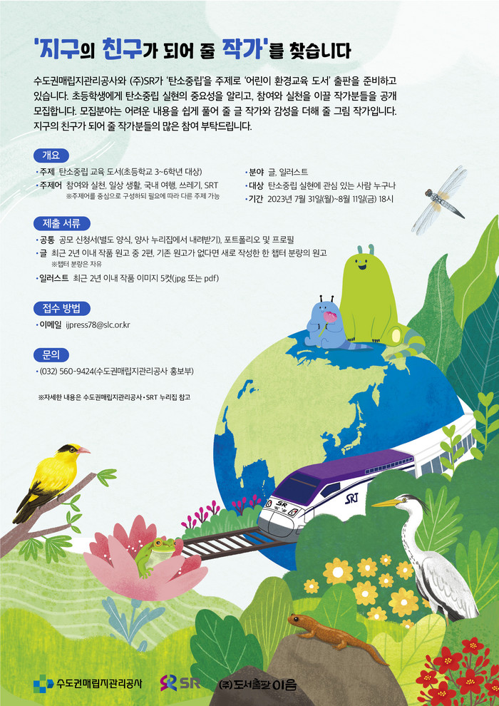 수도권매립지관리공사와 SRT 운영사 에스알(SR)이 7월 31일부터 8월 11일까지 어린이 환경교육도서를 집필할 작가를 모집한다.