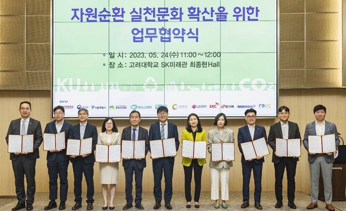 (재)기후변화센터(이사장 유영숙)에 따르면, 대학 캠퍼스 내 자원순환실천 문화 확산을 위해 환경부와 서울시, 고려대, 환경보전협회, SKC, LG전자, 빙그레, 해태아이스크림, 리코, 한국기후환경네트워크를 포함한 11개 기관과 업무협약을 체결했다고 24일 밝혔다.