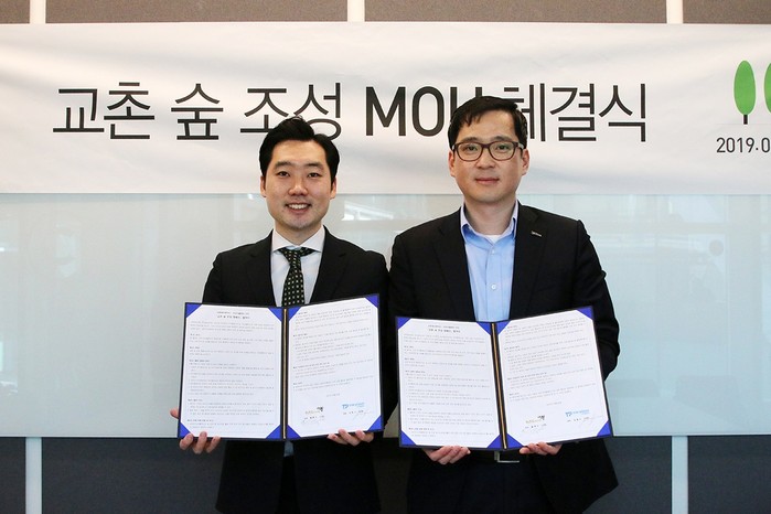[환경데일리 유혜리 기자]치킨 프랜차이즈 교촌에프앤비㈜가 환경 보호를 위한 사회혁신기업 '트리플래닛'과 업무협약(MOU)을 체결하고, 1회용품 공해 및 미세먼지 저감을 위한 숲 조성에 나선다고 5일 밝혔다.