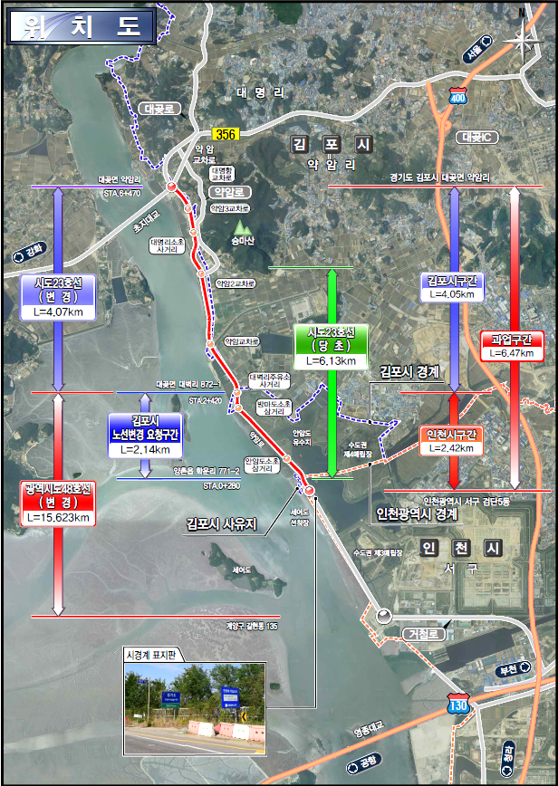 인천 서구 거첨도에서 김포시 약암리 초지대교 입구까지 전체 약 6.5km 구간을 2차로에서 4차선으로 확장하는 도로 개설사업은, 총 사업비 약 567억 원으로 지난 2021년 착공에 들어갔다.