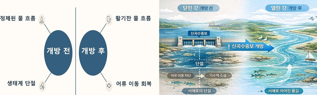 그는 신곡수중보가 열리면 한강은 자연스럽게 흐름과 연속성 회복, 서울과 서해 생태계의 연결성, 기수역이 복원된다."고 주장했다.