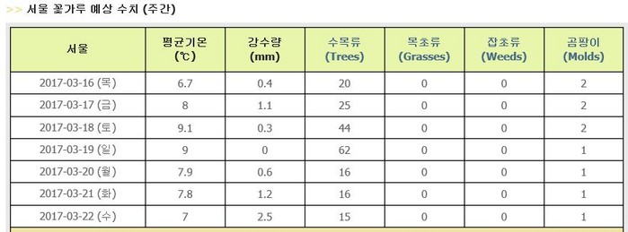 | ▲기상청 꽃가루 예보 |