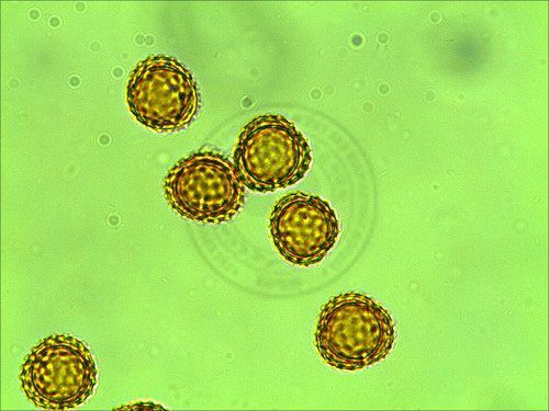 ▲돼지풀(두드러기 쑥, Short 혹은 Common ragweed, Ambrosia artemisiifolia L.)은 생태계 교란종이다. 이제는 전국 어디가나 볼 수 있을 만큼 토양을 완전 장악했다. 강한 항원성을 지닌 알레르기 유발 식물로 높이는 1.5~3m로 돼지풀에 비해 월등히 키가 크고 7-8월에 꽃이 핀다. 사진은 돼지풀 꽃가루 확대한 모양이다. |