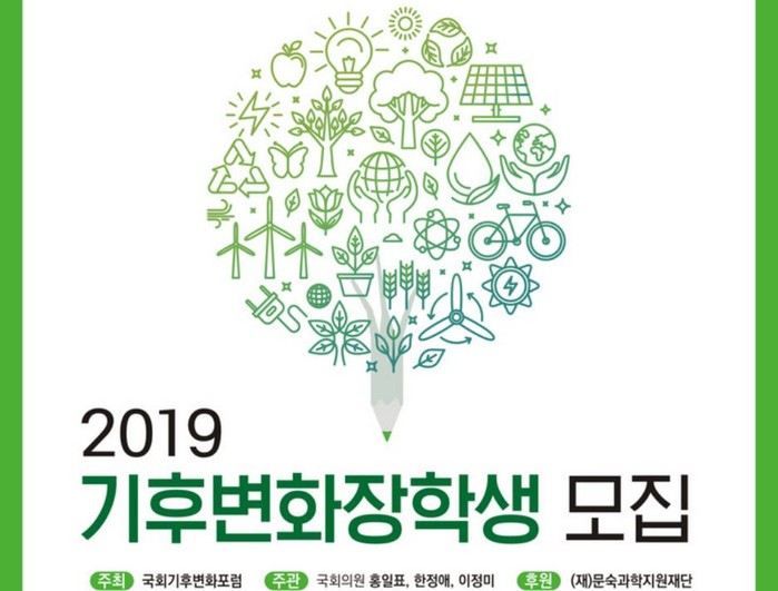 2019 기후변화 장학생은 서류심사와 면접심사를 통해 총 2명을 선발하고, 각각 최대 300만원의 장학금을 지원할 예정이며, 자세한 사항은 국회기후변화포럼 홈페이지를 참조하거나 대표메일로 문의하면 된다.