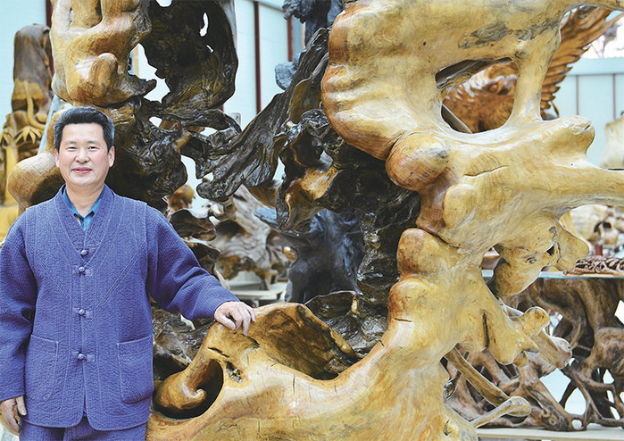 땔감용으로 버릴 수 있는 나무도 보는 관점에 따라 훌륭한 작품으로 다시 태어날 수 있다고 굳게 믿는 그다. 작품이 되는 나무가 있다는 소식만 들리면 만사를 제쳐두고 달려간다. 현재 그가 수집한 나무작품중에는 인도네시아, 태국, 캄보디아, 중국 등지에서 들려온 거목도 수십여 종.