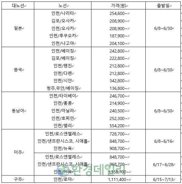 아시아나항공은 6월 8일에서 6월30일 사이에 출발하는 ▲일본 ▲중국 ▲동남아 ▲미주 ▲유럽 일부 국제노선의 항공권을 이달 8일(목)부터 21일(수)까지 최대 59% 할인된 가격으로 특별 판매한다.