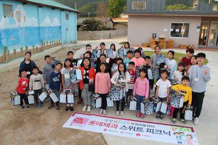 롯데제과(대표이사 민명기)는 9월 29일, 지난해에 건립한 전남 영광의 지역아동센터 '롯데제과 스위트홈' 5호점을 이용하는 어린이 29명과 지역아동센터 인솔 선생님 등 총 32명을 초청, '스위트피크닉' 행사를 가졌다.