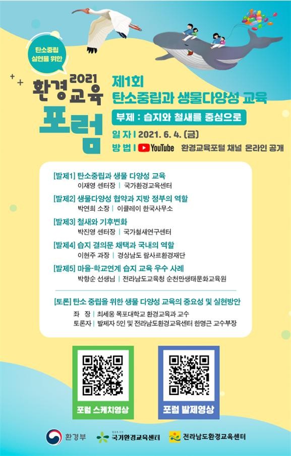 [환경데일리 김영민 기자]국가환경교육센터(센터장 이재영)는 전라남도환경교육센터와 함께 5월 21일 제1회 2021 환경교육포럼을 진행했다.