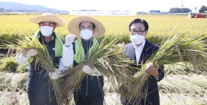 [환경데일리 문종민 기자]이성희 농협중앙회장은 18일 충남 만세보령통합RPC 관내 벼 수확현장을 방문, 쌀 수확기 대책을 밝히고 산지의견을 청취했다.