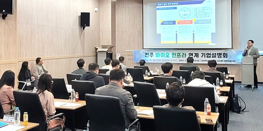 시는 25일 전주혁신창업허브 성장동에서 바이오산업의 동반자인 전북특별자치도, 전북대, 전북대병원, 전북경제통상진흥원과 전국 첨단 의료기기 기업 20여개사를 초청해 바이오 인프라 연계 기업 유치 설명회를 개최했다고 25일 밝혔다.