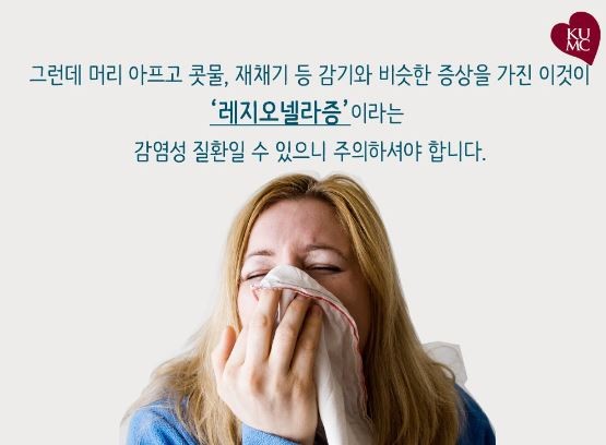 레지오넬라증은 '감염병 예방 및 관리에 관한 법률'에 의한 제3군 법정감염병이다. 냉각탑수나 샤워기, 중증환자치료기관 및 면역력이 약한 노인이용시설 등의 수계시설의 오염된 물에 존재하던 균이 비말형태로 인체에 흡입돼 감염되며 사람 간 전파는 되지 않는다.
