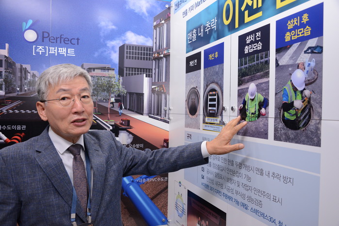 ㈜퍼팩트는 이를 해결하고자 오·우수맨홀 및 상·하수도관의 차별화된 제품을 더욱 성능 강화했다. 견고한 수밀성과 내구성이 우수한 원터치 상·하수도관, 부식방지 PE 맨홀, 각종 연결구 등 토압에 매우 강한 제품 개발에 성공했다.