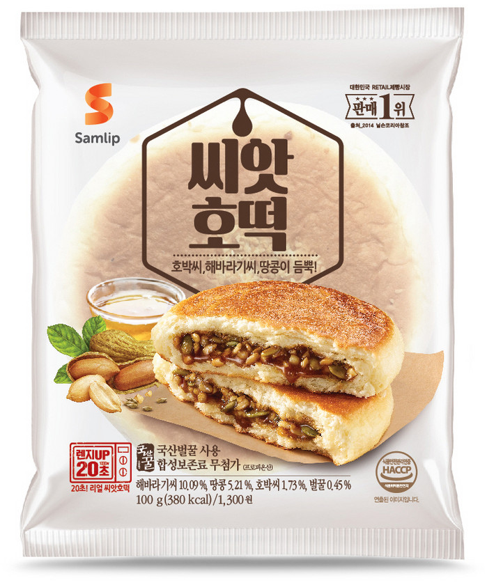 씨앗호떡은 쫄깃한 호떡 속에 씨앗류와 땅콩, 달콤한 벌꿀을 넣어 고소함과 달콤한 맛을 동시에 느낄 수 있는 제품이다.