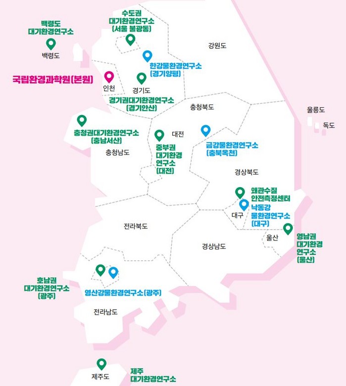 | ▲ 전국 대기오염물질 측정소 위치도 |
