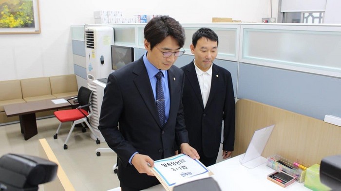 | ▲한준호 의원(고양시을)이 김용민 의원(경기 남양주시병)과 함께 국회에 관련 법안을 제출하고 있다. |