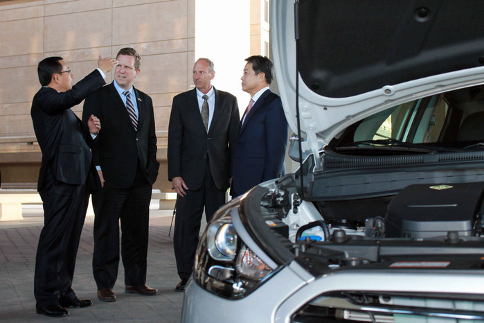 박근혜 대통령 방미 중 경제사절단으로 참석한 현대차 정진행 사장 일행은 15일(현지시간) 워싱턴 미국 에너지부에서 데이비드 다니엘슨(David Danielson, 에너지효율 및 신재생에너지 담당) 미국 에너지부 차관보, 뤼벤 사카(Reuben Sarkar) 부차관보, 수니타 사티아팔 (Sunita Satyapal) 국장 등 관계자들이 참석한 가운데 수소연료전지차 확산을 위한 양측 협력 방안을 논의하고 투싼 수소연료전지차 시승회를 가졌다.