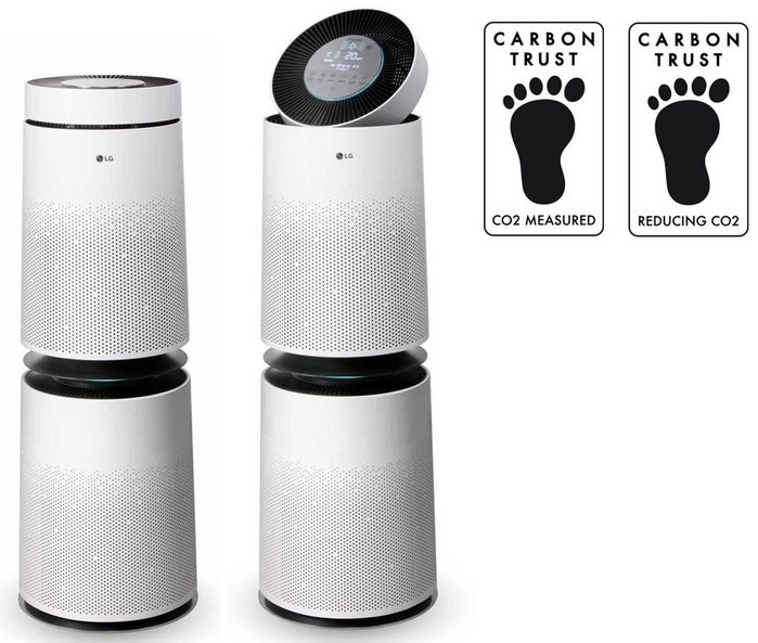 LG 퓨리케어 360° 공기청정기는 최근 영국의 비영리단체 '카본 트러스트(Carbon Trust)'로부터 업계 최초로 '탄소배출량(Carbon Measured)'과 '탄소 절감(Carbon Reducing)'에 대한 인증을 동시에 받았다. 공기청정기 분야에서 '탄소발자국(Carbon Footprint)' 인증 2개를 모두 획득한 것은 LG전자가 처음이다.