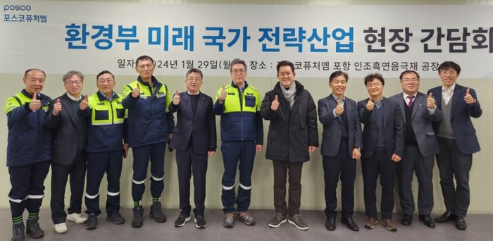 환경부는 임상준 차관이 29일 '포항 블루밸리 산업단지(포항 남구 소재)'를 방문, ㈜포스코퓨처엠의 국내 유일 인조흑연 음극재 생산 시설·공정을 둘러본 뒤 간담회를 개최하고, 이곳 인근에 있는 환경부 전기차 배터리 자원순환 클러스터 부지(2025년 6월 완공예정) 및 이차전지 종합관리 센터를 방문했다.